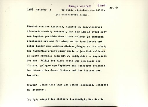 | Bestand | Bestand A, Burgsteinfurt, Urkunden | alle Regesten |