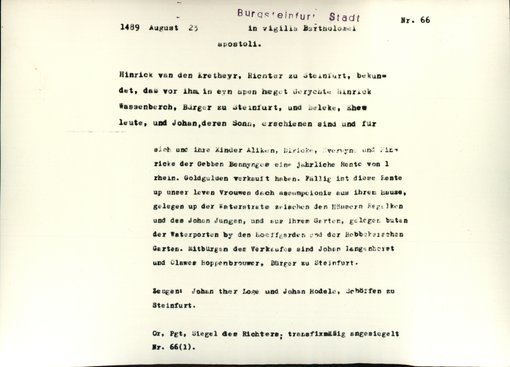 | Bestand | Bestand A, Burgsteinfurt, Urkunden | alle Regesten |