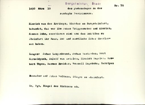 | Bestand | Bestand A, Burgsteinfurt, Urkunden | alle Regesten |