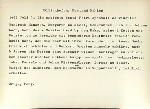 | Bestand | Nehlen, Urkunden | alle Regesten |