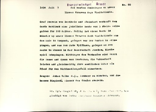 | Bestand |  Bestand A, Burgsteinfurt, Urkunden |  alle Regesten | |||||||