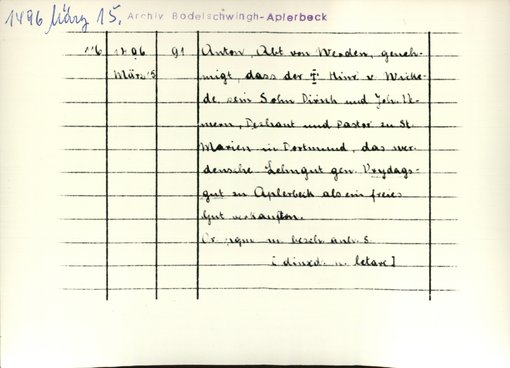 | Bestand | Aplerbeck, Haus Rodenberg, Urkunden | alle Regesten |