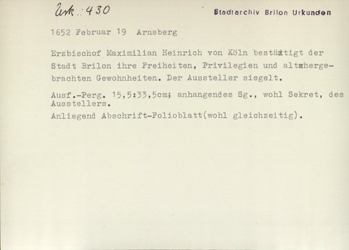 | Archiv | Brilon, Stadtarchiv |
