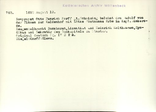 | Bestand | Möllenbeck, Haus, Urkunden | alle Regesten |