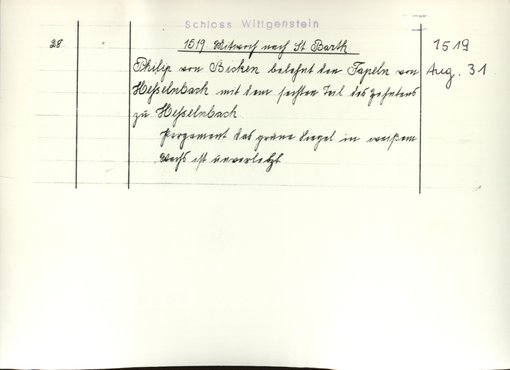 | Benutzungsort | Fürstliches Archiv zu Sayn-Wittgenstein-Hohenstein | |||||||