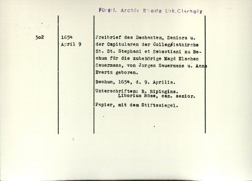 | Bestand | Clarholz, Stift, Urkunden | alle Regesten |