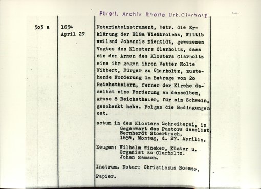 | Bestand | Clarholz, Stift, Urkunden | alle Regesten |
