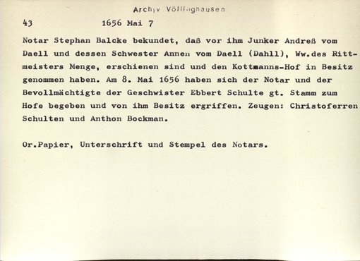| Bestand | Gutsarchiv, Urkunden | alle Regesten |