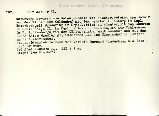 | Bestand | Möllenbeck, Haus, Urkunden | alle Regesten |
