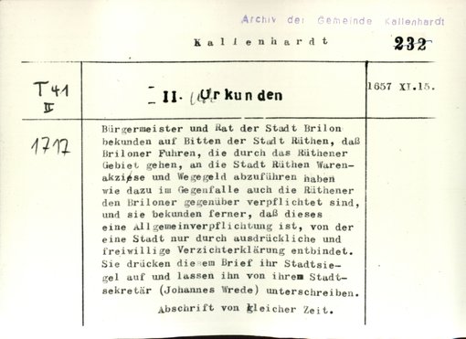 | Bestand | Kallenhardt, Stadt, Urkunden | alle Regesten |