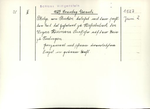 | Benutzungsort | Fürstliches Archiv zu Sayn-Wittgenstein-Hohenstein | |||||||