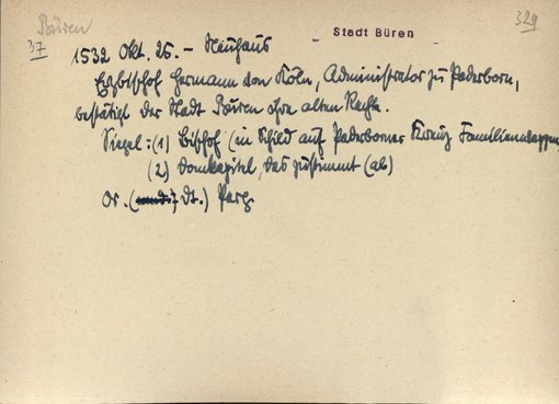 | Benutzungsort | Stadtarchiv Büren | |||||||