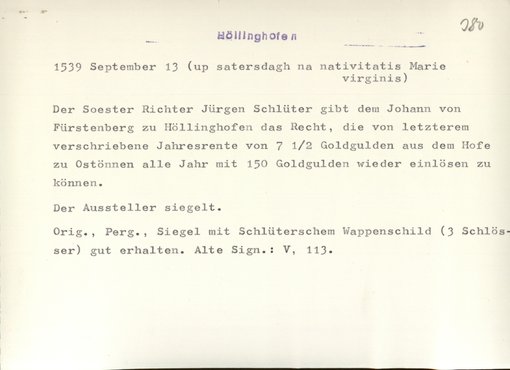 | Bestand | Höllinghofen, Urkunden | alle Regesten |