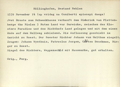 | Bestand | Nehlen, Urkunden | alle Regesten |
