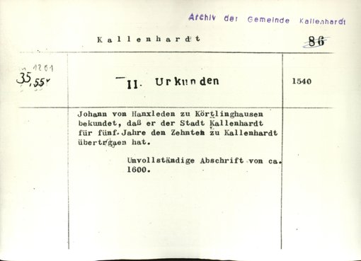 | Bestand | Kallenhardt, Stadt, Urkunden | alle Regesten |