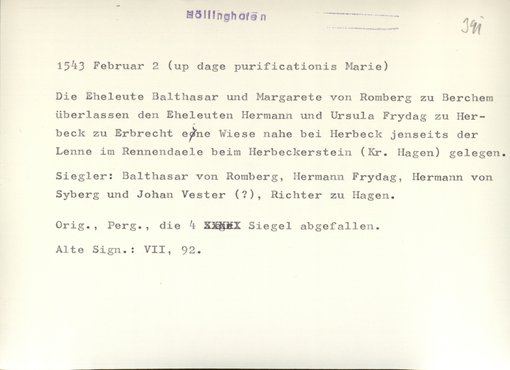 | Bestand | Höllinghofen, Urkunden | alle Regesten |