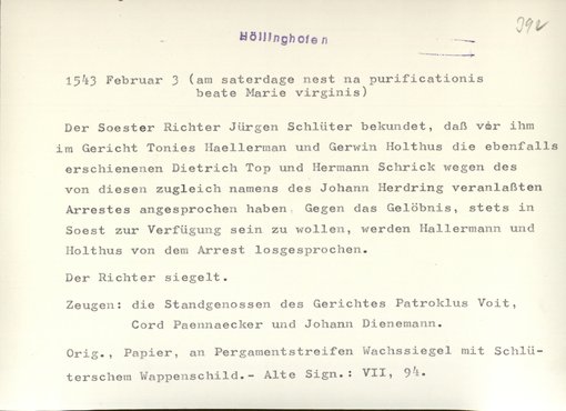 | Bestand | Höllinghofen, Urkunden | alle Regesten |