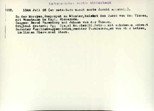 | Bestand | Möllenbeck, Haus, Urkunden | alle Regesten |