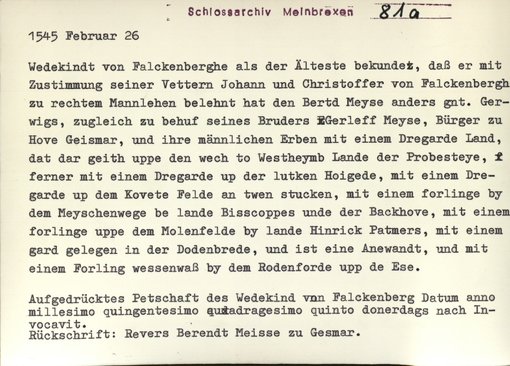 | Benutzungsort | Schlossarchiv Meinbrexen | |||||||