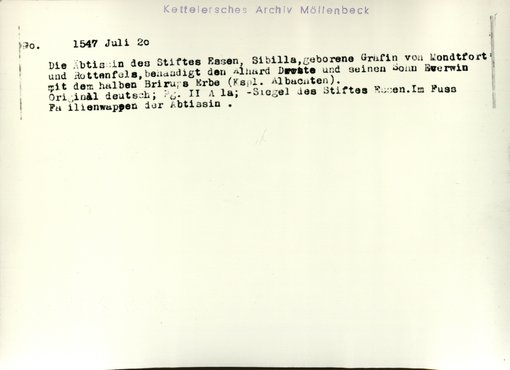 | Bestand | Möllenbeck, Haus, Urkunden | alle Regesten |