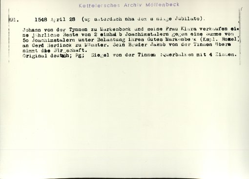 | Bestand | Möllenbeck, Haus, Urkunden | alle Regesten |