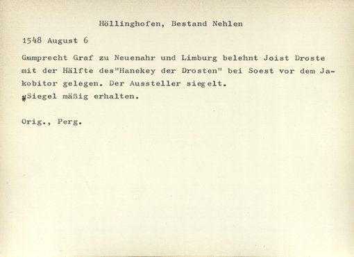 | Bestand | Nehlen, Urkunden | alle Regesten |