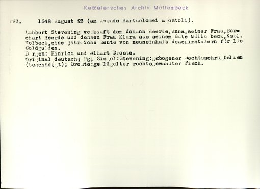 | Bestand | Möllenbeck, Haus, Urkunden | alle Regesten |