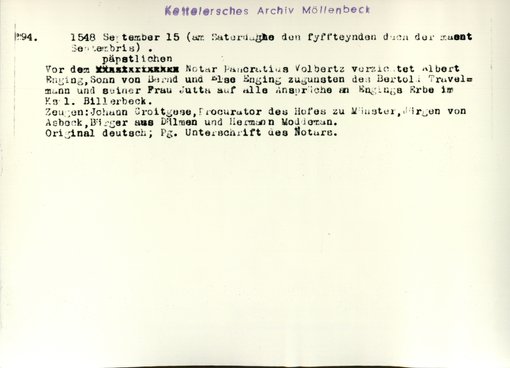 | Bestand | Möllenbeck, Haus, Urkunden | alle Regesten |