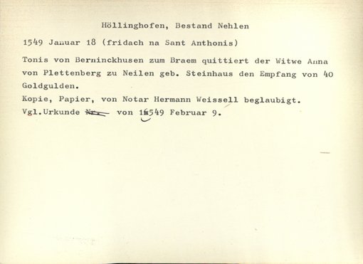 | Bestand | Nehlen, Urkunden | alle Regesten |