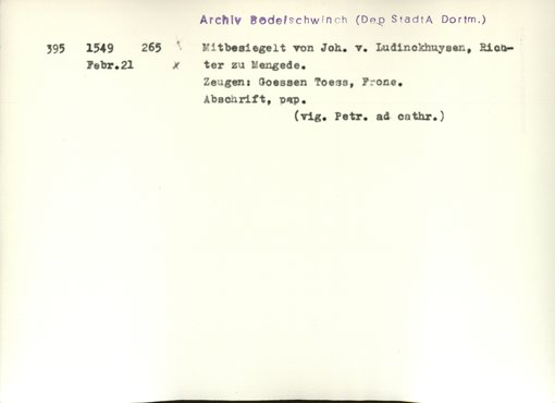 | Bestand | Bodelschwingh, Urkunden | alle Regesten |