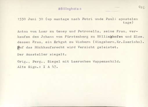 | Bestand | Höllinghofen, Urkunden | alle Regesten |