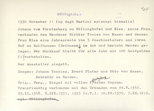 | Bestand | Höllinghofen, Urkunden | alle Regesten |