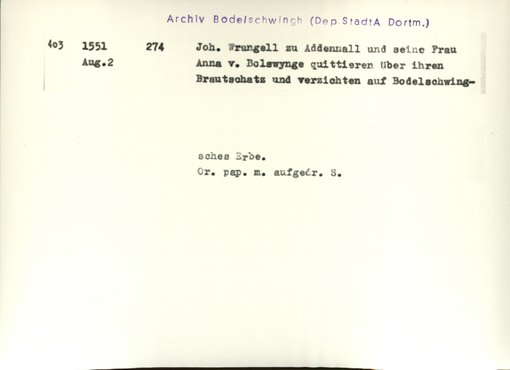 | Bestand | Bodelschwingh, Urkunden | alle Regesten |