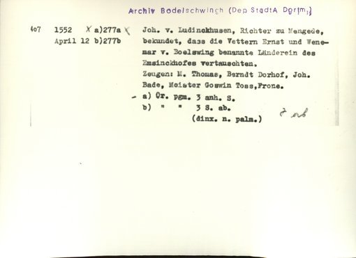 | Bestand | Bodelschwingh, Urkunden | alle Regesten |