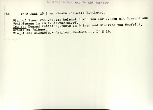 | Bestand | Möllenbeck, Haus, Urkunden | alle Regesten |