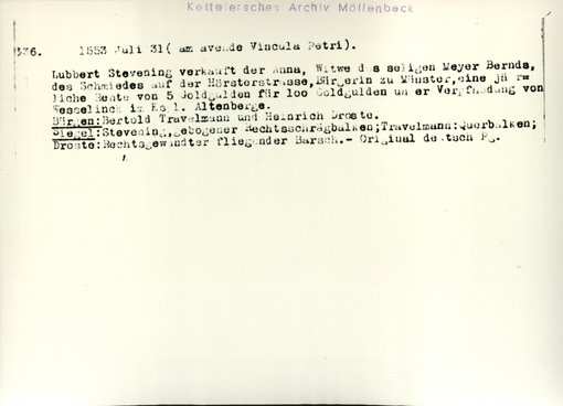 | Bestand | Möllenbeck, Haus, Urkunden | alle Regesten |