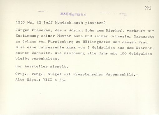 | Bestand | Höllinghofen, Urkunden | alle Regesten |
