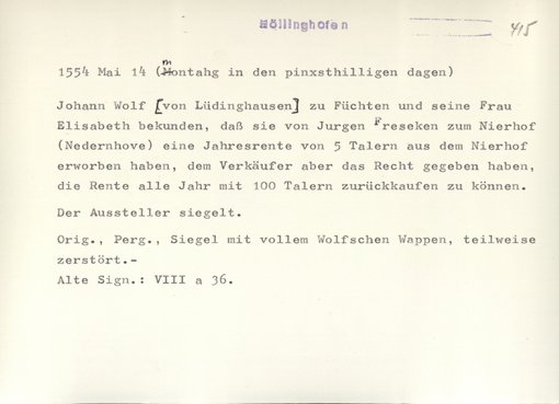 | Bestand | Höllinghofen, Urkunden | alle Regesten |