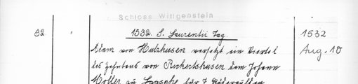 | 1532-08-10 | Archiv: Laasphe, Fürstliches Archiv Benutzungsort: Fürstliches Archiv zu Sayn-Wittgenstein-Hohenstein Bestand: Urkunden | Regest | |