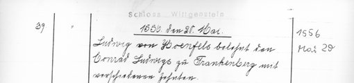 | 1556-05-20 | Archiv: Laasphe, Fürstliches Archiv Benutzungsort: Fürstliches Archiv zu Sayn-Wittgenstein-Hohenstein Bestand: Urkunden | Regest | |