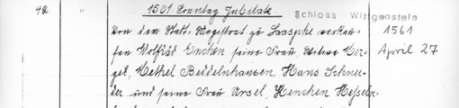 | 1542 | Archiv: Laasphe, Fürstliches Archiv Benutzungsort: Fürstliches Archiv zu Sayn-Wittgenstein-Hohenstein Bestand: Urkunden | Regest | |