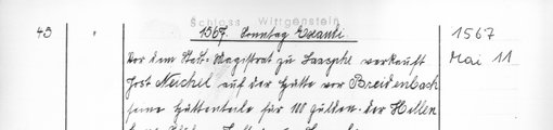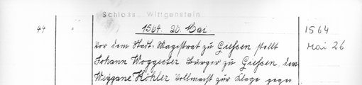 | 1567-05-11 | Archiv: Laasphe, Fürstliches Archiv Benutzungsort: Fürstliches Archiv zu Sayn-Wittgenstein-Hohenstein Bestand: Urkunden | Regest | |