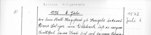 | 1572-07-06 | Archiv: Laasphe, Fürstliches Archiv Benutzungsort: Fürstliches Archiv zu Sayn-Wittgenstein-Hohenstein Bestand: Urkunden | Regest | |
