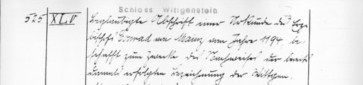 | 1194 | Archiv: Laasphe, Fürstliches Archiv Benutzungsort: Fürstliches Archiv zu Sayn-Wittgenstein-Hohenstein Bestand: Urkunden | Regest | |