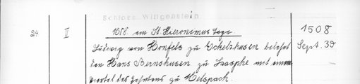 | 1508-09-30 | Archiv: Laasphe, Fürstliches Archiv Benutzungsort: Fürstliches Archiv zu Sayn-Wittgenstein-Hohenstein Bestand: Urkunden | Regest | |