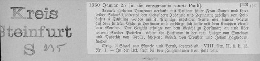 | 1360-01-25 | Archiv: Inventare der nichtstaatlichen Archive Westfalens (INA), Alte Folge (AF)] Benutzungsort: LWL-Archivamt für Westfalen Bestand: Bd. 1, Heft 4: Kreis Steinfurt | Regest | |