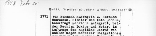 | 1648-02-20 | Archiv: Westerholt Benutzungsort: Stadt- und Vestisches Archiv Recklinghausen Bestand: Westerholt-Westerholt, Urkunden | Regest | |