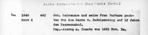 | 1648-03-04 | Archiv: Bodelschwingh (Dep.) Benutzungsort: Stadtarchiv Dortmund Bestand: Bodelschwingh, Urkunden | Regest | |