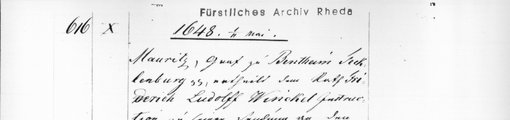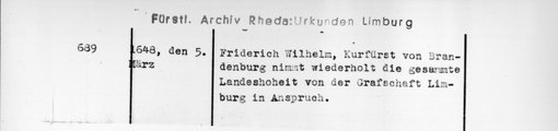 | 1648-03-05 | Archiv: Rheda, Fürstliches Archiv Benutzungsort: LWL-Archivamt für Westfalen Bestand: Limburg, Urkunden | Regest | |