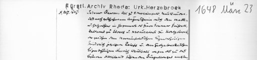 | 1648-03-23 | Archiv: Rheda, Fürstliches Archiv Benutzungsort: LWL-Archivamt für Westfalen Bestand: Herzebrock, Urkunden | Regest | |